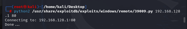 运行对应的Exploit脚本(39009.py)该版本的远程栈溢出漏洞。