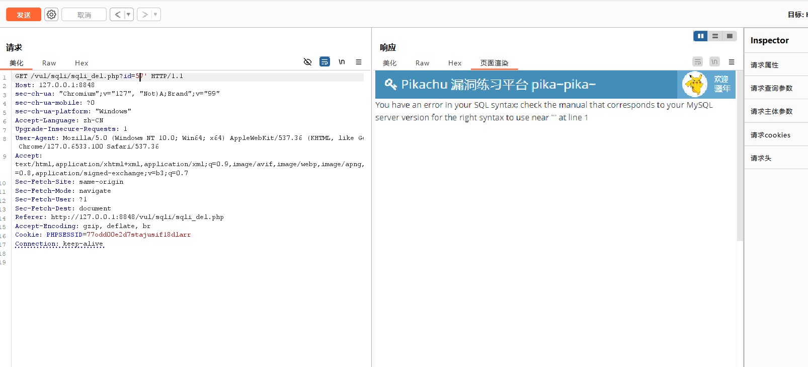 这说明了SQL 注入点可能不在 id 参数,而是在 HTTP 请求头中的某个字段(比如 User-Agent、Accept、Referer 等)。
