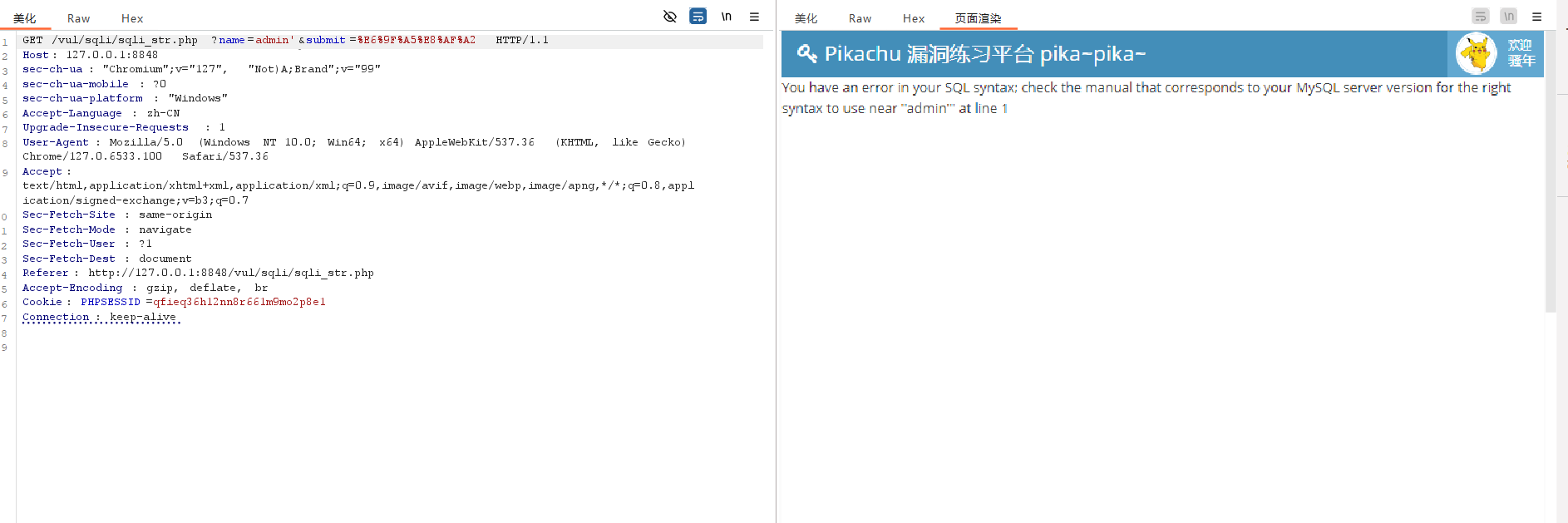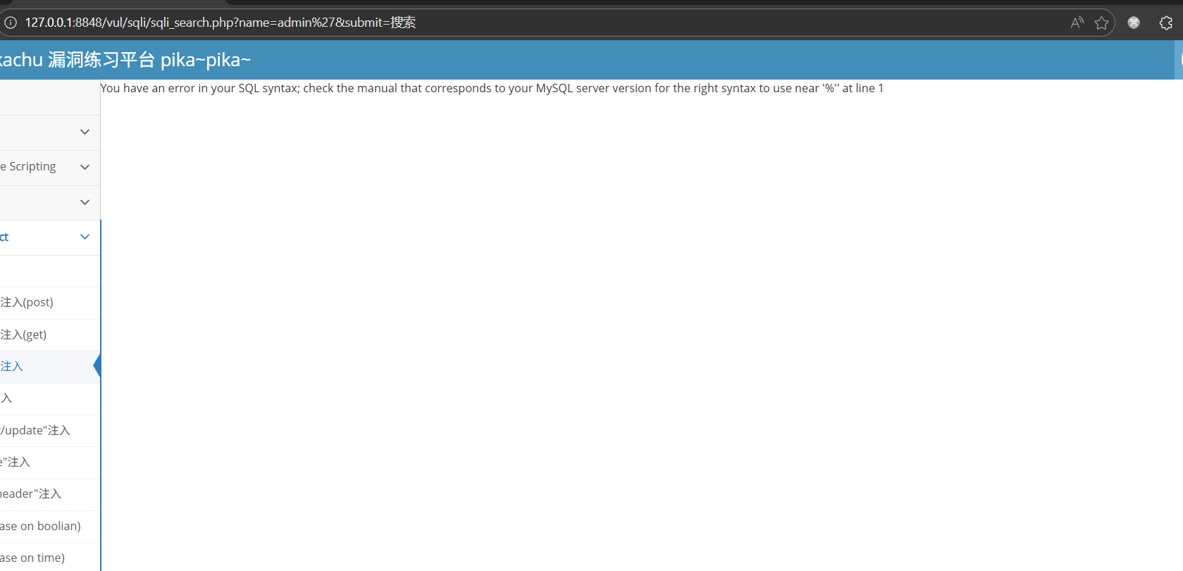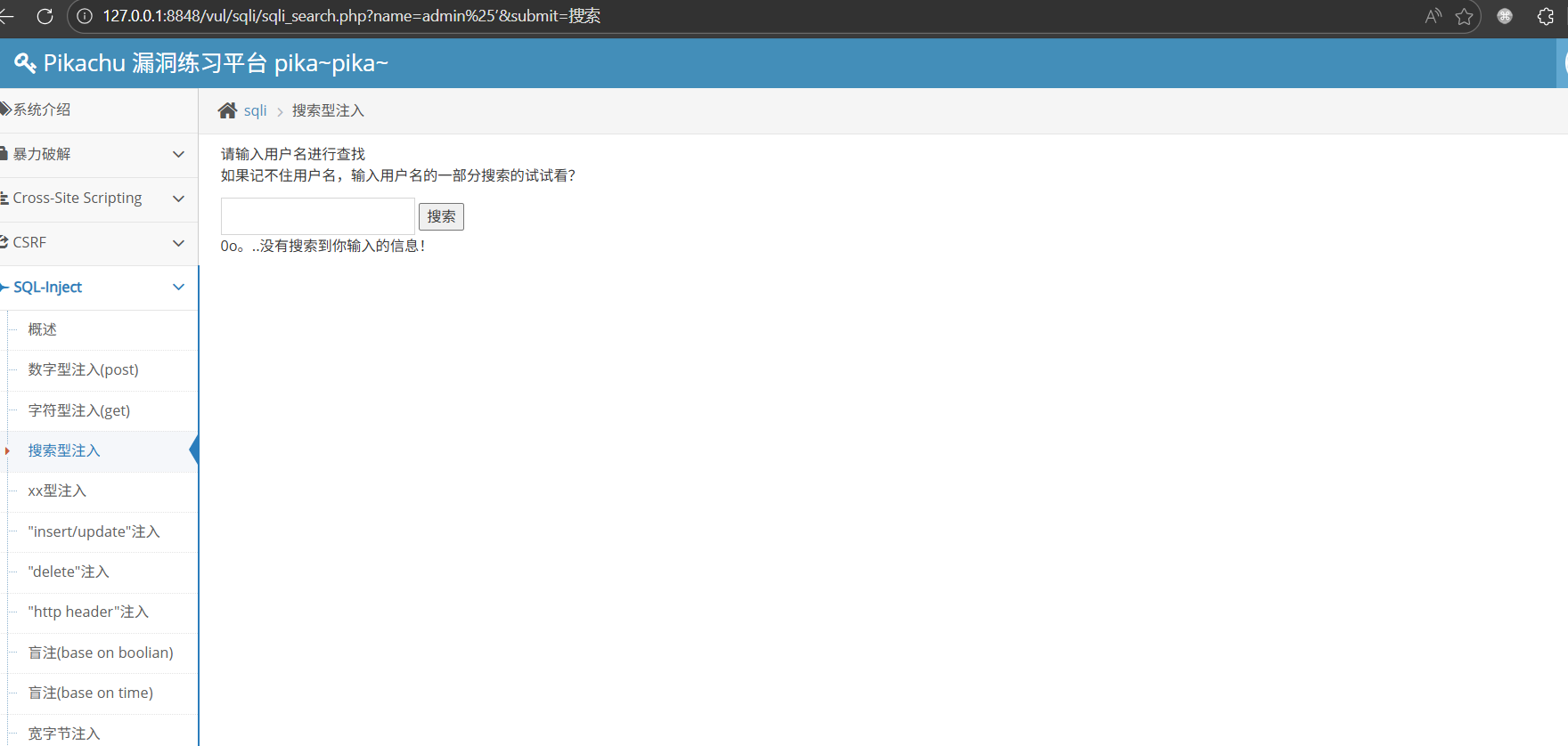 构造为name=admin‘&submit=%E6%9F%A5%E8%AF%A报错说明存在注入点