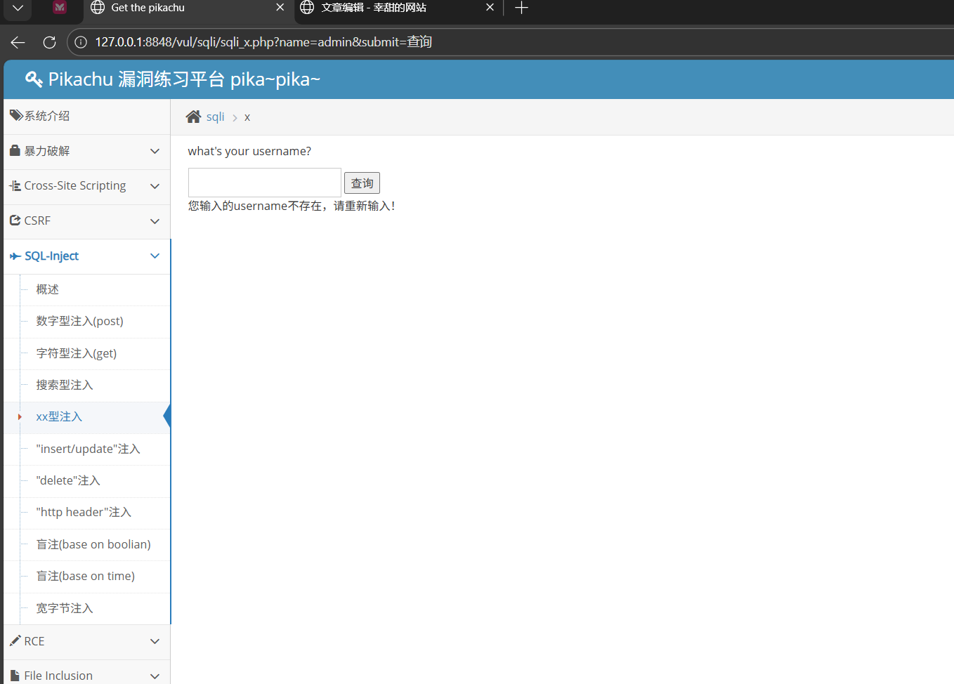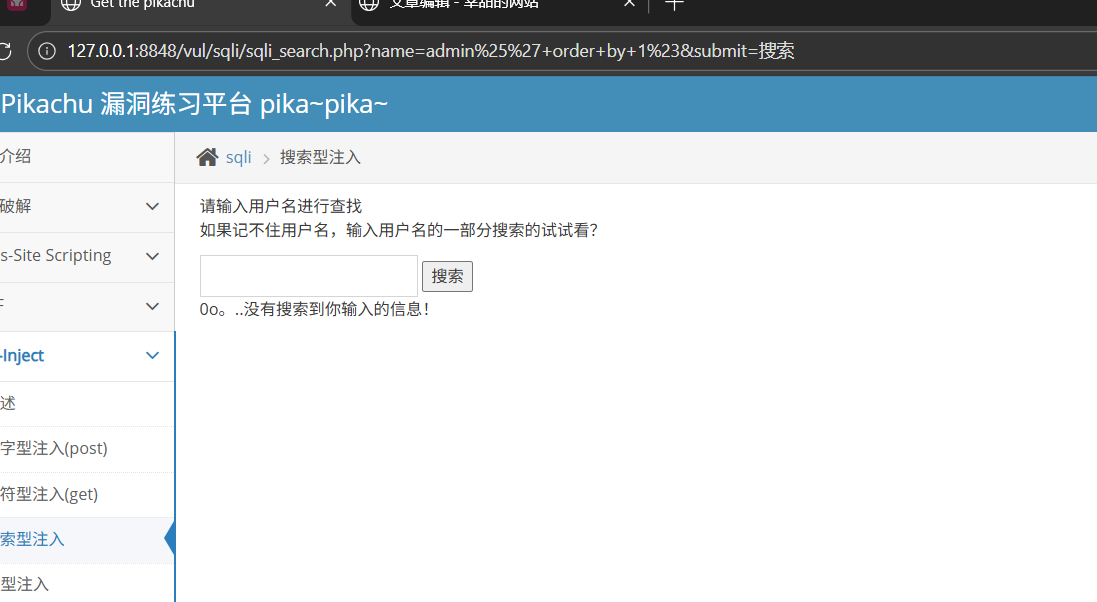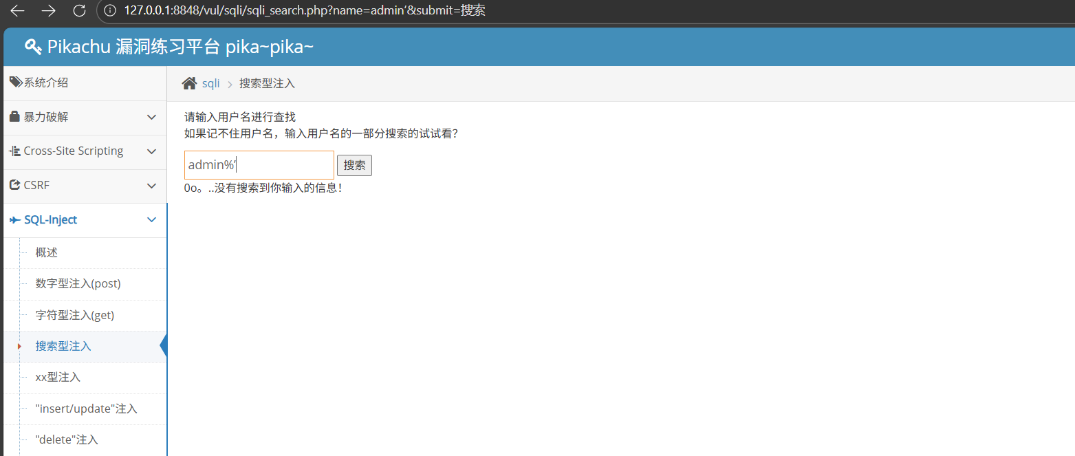 构造name=admin&submit=%E6%9F%A5%E8%AF%A回显正常继续进行构造