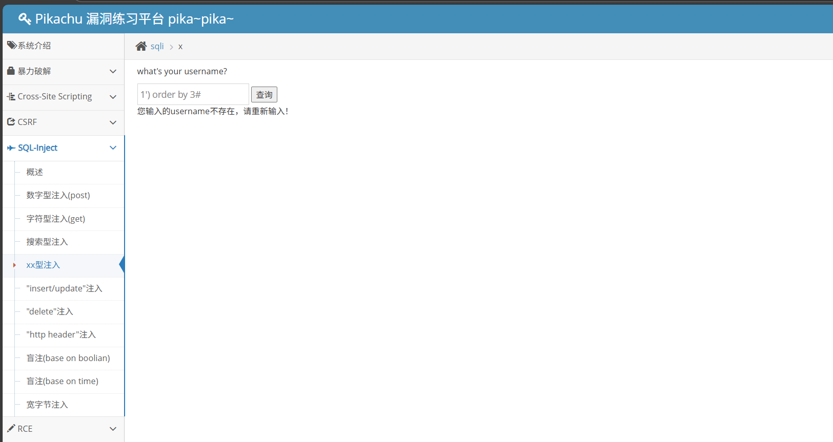 插入型和之前的差别挺大的,之前的都可以用联合语句注入,这个不行,这个使用报错注