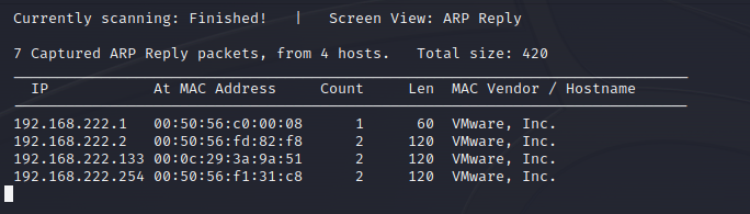 1、发现目标 (netdiscover),找到WebDeveloper的IP地址。截图。
