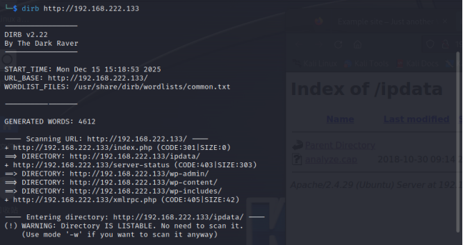 基本思路:本网段IP地址存活扫描(netdiscover);网络扫描(Nmap);浏览HTTP 服务;网站目录枚举(Dirb);发现数据包文件 “cap”;分析 “cap” 文件,找到网站管理后台账号密码;插件利用(有漏洞);利用漏洞获得服务器账号密码;SSH 远程登录服务器;tcpdump另类应用。