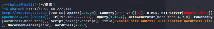 4、利用whatweb探测目标网站使用的CMS模板。截图。分析使用的CMS是什么?