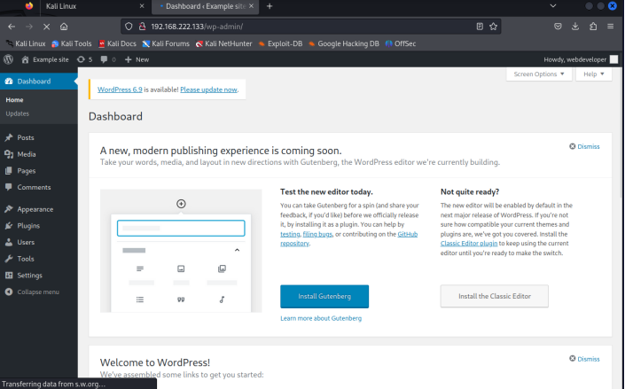 Form item: "log" = "webdeveloper" Form item: "pwd" = "Te5eQg&4sBS!Yr$)wf%(DcAd"