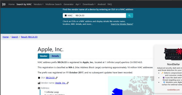 (2)查询OUI数据库:我使用maclookup.app查询的结果显示: