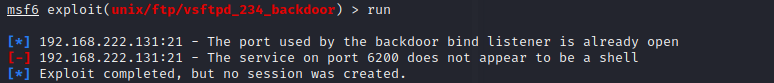 2. root 权限 shell 启动:后门函数被触发后,服务器会在后台悄悄开启一个监听 6200 端口的 shell 进程。由于 vsftpd 服务默认以 root 权限运行,这个后门 shell 也继承了最高权限,相当于为攻击者开放了“直达系统核心”的通道。