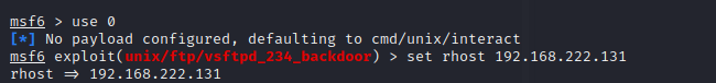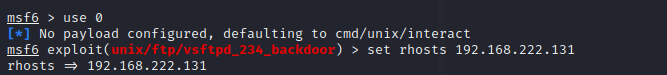 (2)利用加载模块(use exploit/unix/ftp/vsftpd_234_backdoor 或者使用use 0)