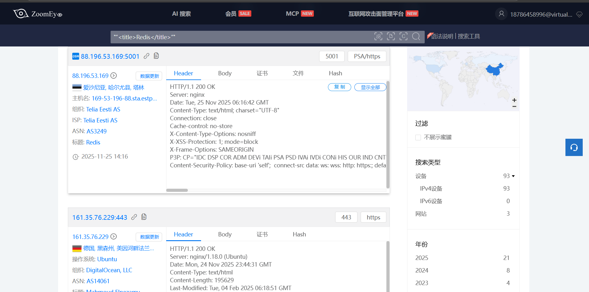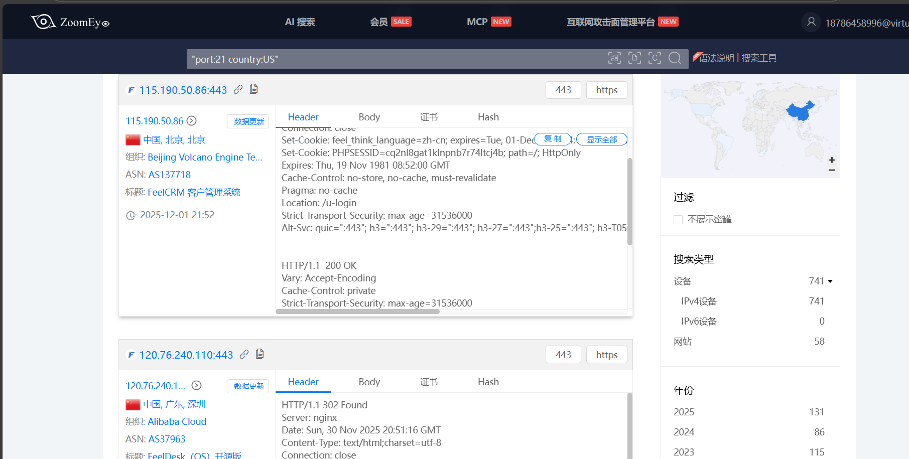 ZoomEye:更侧重于Web应用层面的资产发现,对国内资产和中文环境有较好的覆盖。